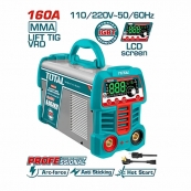 Máquina de soldar TIG TOTAL 160A TIG1601, ideal para trabajos precisos en acero inoxidable, cobre y aluminio. Perfecta para mantenimiento industrial y soldadura de metales delgados, con un arco suave y controlado.